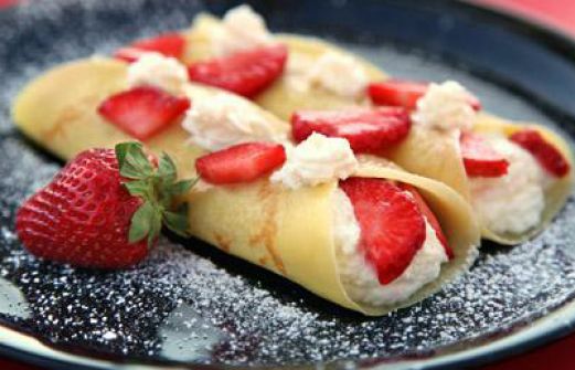Ingredientes - Para las crepes: - 3 huevos - 1 taza de harina todo uso - 1/8 cucharadita de sal - 1 taza de leche - 2 cucharadas de mantequilla fundida - Para el relleno de fresas: - 1 kg de fresas frescas lavadas cortadas y mezcladas con ½ taza de azúcar morena - 2 tazas de crema b [...]