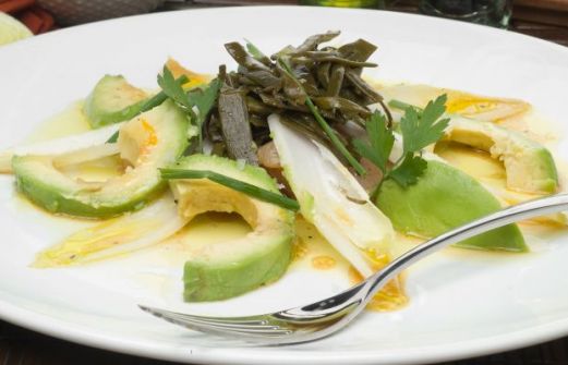 - Para 2 personas: 1 lomo de bonito de 200 g 150 g de espagueti de mar 2 endibias 1 aguacate 1 lima 1 naranja 3 cucharadas de salsa de soja aceite de oliva sal pimienta cebollino perejil Elaboración de la ensalada de bonito marinado y espagueti de mar Limpia y corta el lom [...]