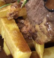 - Para 4 personas: 1 redondo de ternera de 1.500 gr. 150 gr. de tocino ibérico 3 patatas 2 cebollas 1 zanahoria 1 pimiento verde 3 dientes de ajo 1 manzana 1 copa de brandy 1 vaso de vino blanco agua aceite virgen extra sal 1 cucharada de mostaza en grano Pimienta negra Pereji [...]