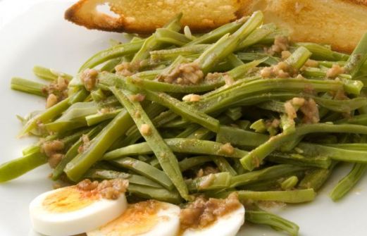 800 gr. de judÃas verdes 8 rebanadas de pan 2 huevos 1 diente de ajo agua sal - Para la bagna cauda: 8 filetes de anchoa en aceite 3 dientes de ajo 2 cucharadas de mantequilla aceite virgen extra Elaboración de las judÃas verdes con bagna cauda Limpia las judÃas verdes, quÃtales [...]