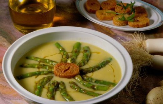 1 kg. de puerros 3 patatas agua sal 24 yemas de espárragos verdes aceite de oliva 12 rebanadas de pan Elaboración de la crema de puerros con espárragos Limpia bien los puerros . Pon agua a hervir y agrega los puerros picados junto con las patatas peladas y troceadas, la sal y un cho [...]