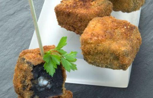 - Para 6-8 personas: 4-5 calamares con su tinta 1 cebolleta 140 gr. de harina 1/2 l. de leche 1/2 l. de caldo de pescado harina, huevo batido y pan rallado (para rebozar) aceite virgen extra sal gorda nuez moscada perejil Elaboración Retira la tinta de los calamares y resérvala. [...]