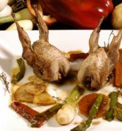 Ingredientes (4 p.): 8 codornices 9 dientes de ajo 8 ramas de romero 1 copa de brandy 2 pimiento rojos 1 bote de judiones en conserva 1 pimiento verde 1 cebolla 10 ajos frescos 100 gr. de tocino ibérico aceite virgen extra sal perejil Elaboración Pon los dos pimientos morro [...]
