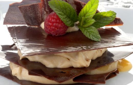 Ingredientes (8 p.): 100 gr. de chocolate de cobertura 1/2 tableta de turrón 1/4 l. de nata unas frambuesas hojas de menta Para la crema de yema: 8 yemas 180 gr. de azúcar 1/2 vaso de agua Elaboración de la receta Milhojas de chocolate con crema de turrón y yema Pon la nata a coce [...]
