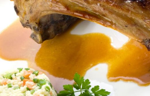 Ingredientes (4p): - 1 costillar de lechazo - 100 gr. de cous-cous precocido - 1/2 zanahoria - 1/2 pimiento verde - 2 naranjas - 1-2 cucharadas de miel - 1 vaso de vino blanco - 4 dientes de ajo - agua - vinagre - aceite de oliva - sal - pimienta negra - romero - tomillo - ceb [...]