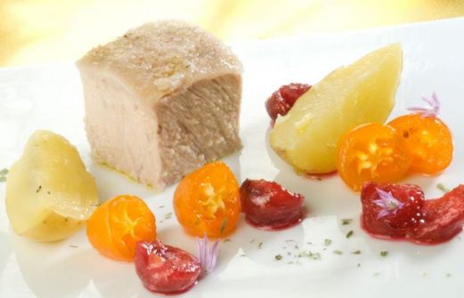 - Para 2 personas: 1 lomo de cerdo de 1 kg 500 g de harina 2 kg de sal gruesa 3 patatas pequeñas 100 g de cerezas 10 naranjas chinas 80 g de azúcar vinagre agua sal hierbas secas variadas flores de cebollino Elaboración de la receta de lomo de cerdo a la sal Pon la sal gruesa [...]