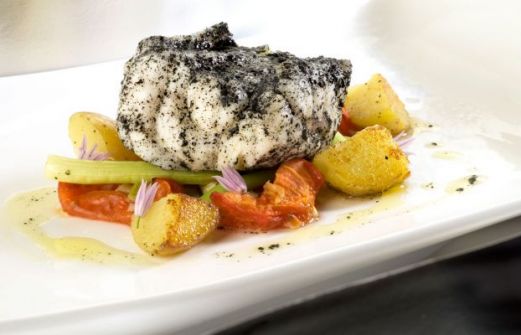 - Para 2 personas: 1 cola de rape de 500 g 2 patatas 2 tomates rama 10 ajos frescos 2 dientes de ajo 3 bolsas de tinta de calamar agua aceite de oliva sal flores de cebollino Elaboración Extiende la tinta de calamar sobre un papel de horno con una espátula. Coloca el papel sobre [...]