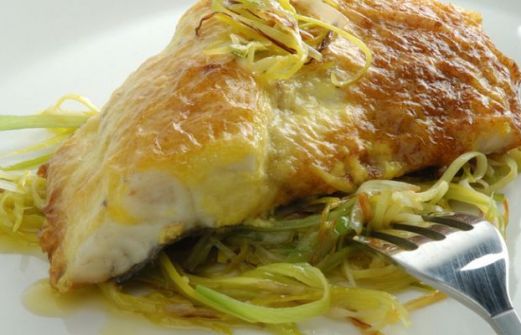 - Para 4 personas: 1 dorada de 1 kg. 3 yemas de huevo 4 puerros 200 gr. de mantequilla unas gotas de zumo de limón aceite virgen extra sal pimienta negra Elaboración Pon la mantequilla al fuego para que se funda. Con un cazo retira la película blanca superficial (espuma) que se for [...]