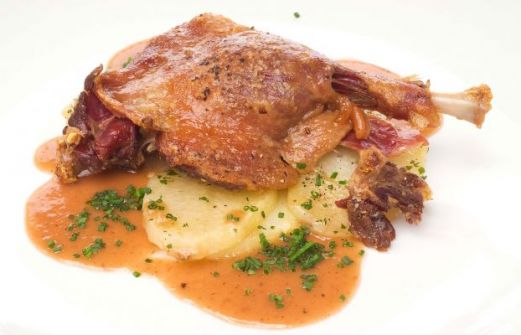 - Para 2 personas: 2 confit de pato 1 patata 70 g de dulce de membrillo 1 vaso de salsa de carne 1 copa de brandy vinagre de Jerez aceite de oliva sal pimienta perejil cebollino Elaboración de la receta de confit de pato con salsa acidul Pela la patata, córtala en rodajas finas [...]