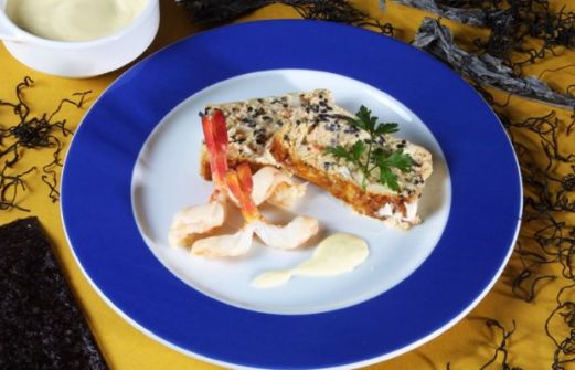 Para 6 personas: 1 perlón grande 16 langostinos 20 gr. de algas hijiki 4 huevos 1/4 l. de nata líquida 1/4 l. de salsa de tomate 4 cucharadas de mahonesa 4 hojas de lechuga agua sal pimienta perejil Para el molde: mantequilla pan rallado Elaboración: Pon las algas a remoj [...]