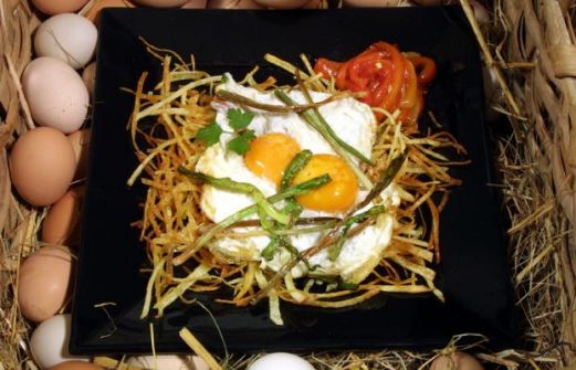 Para 4 personas: 8 huevos 2 pimientos morrones 3 patatas 16 ajos tiernos 1 diente de ajo aceite virgen extra sal perejil Elaboración Limpia los pimientos. Colócalos en la placa del horno, rocíalos con aceite, sazónalos e introdúcelos en el horno a 170ºC-180ºC, durante 35-40 minu [...]
