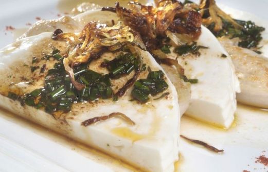 Para dos personas 3 lonchas de queso fresco 4 filetes de pechuga de pavo 2 cebolletas 1 lima aceite virgen extra vinagre balsámico sal cebollino orégano perejil pimentón dulce Elaboración de la receta de queso marinado con pechuga de pavo Pica las cebolletas en juliana y po [...]