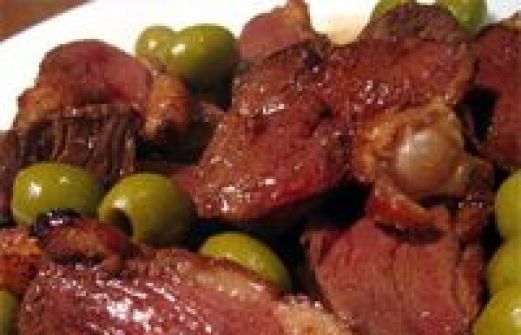 para 4 personas - 150 gramos de aceitunas - 2 dientes de ajo - 20 gramos de cebolla - 15 gramos de harina - 75 gramos de mantequilla - 1 pato - 1 ramito de perejil - 1 pizca de sal - 125 ccs de [...]