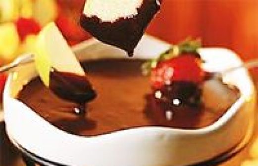 para 4 personas - 150 ccs de café fuerte - 1 cucharadita de canela molida - 400 gramos de chocolate semiamargo - 75 ccs de coñac - 2 mandarinas - 1 manzana - 1 melocotón - 75 ccs de nata o crema liquida [...]
