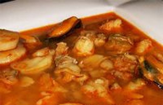 para 8 personas - 12 ccs de aceite - 3 dientes de ajo - 100 gramos de almejas - 1 cebolla - 2 choricillo espanol - 1 ramito de cilantro - 200 gramos de gambas - 4 huevos duros - 1 limón [...]